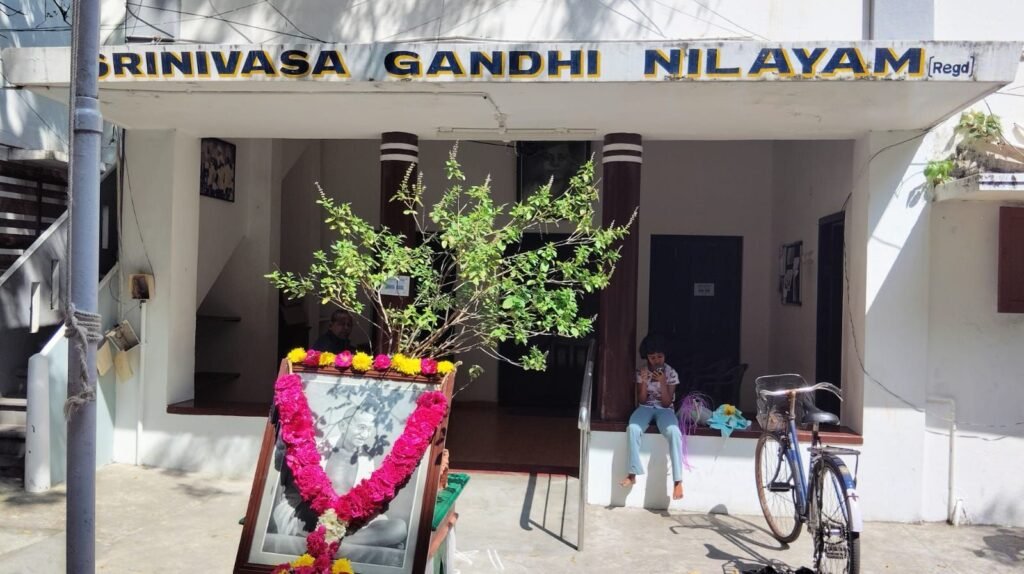 The Headmistress, Mrs.E.Nathiya garlanded Gandhiji’s picture.